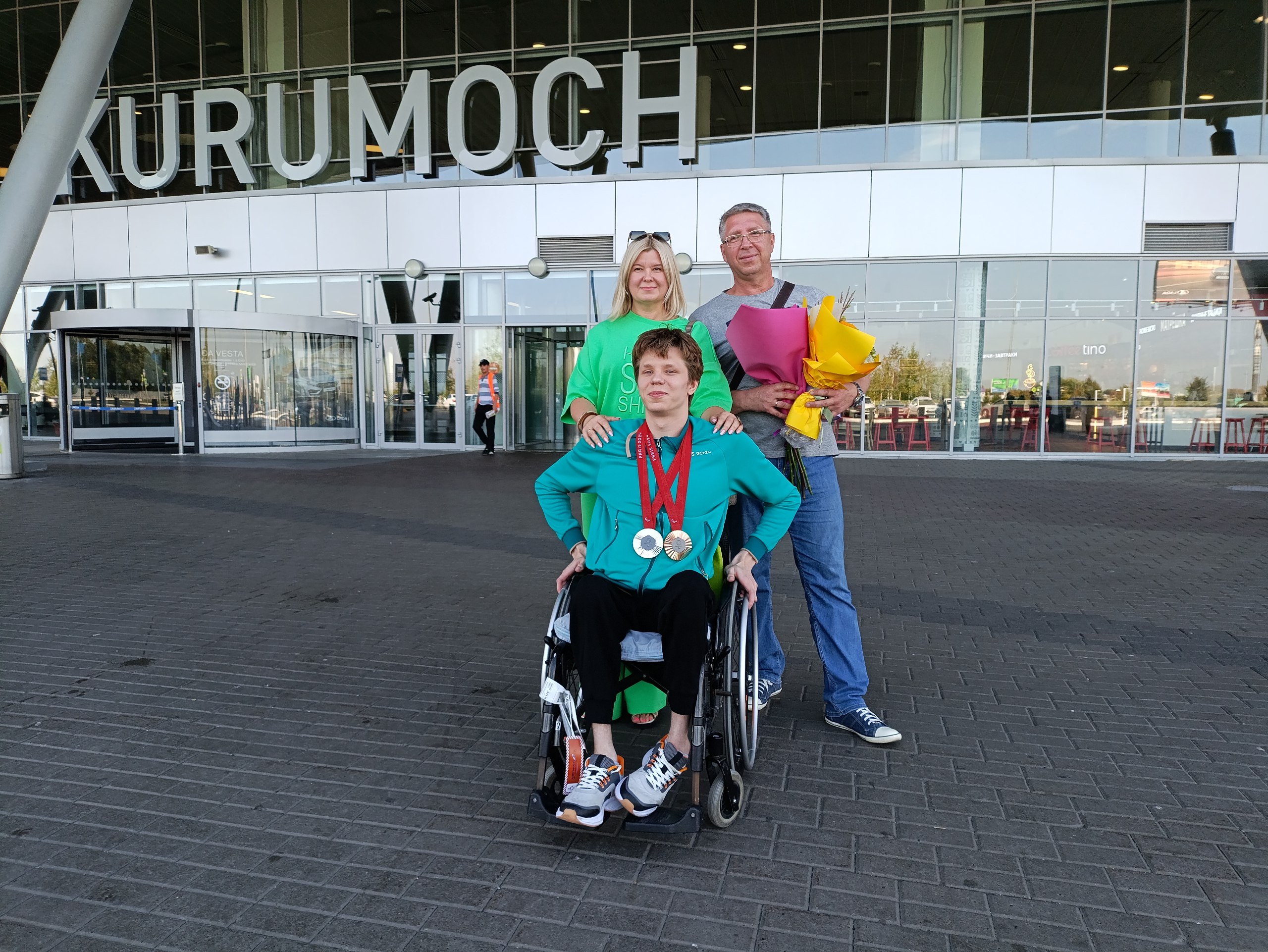 В «Курумоче» Кирилла Пульвера встречали родители, девушка, друзья, тренеры, представители министерства спорта Самарской области, Центра адаптивной физической культуры и адаптивного спорта, Центра спортивной подготовки спортивных сборных команд Самарской области, администрации Самары и самарской СШОР №8, журналисты и болельщики.