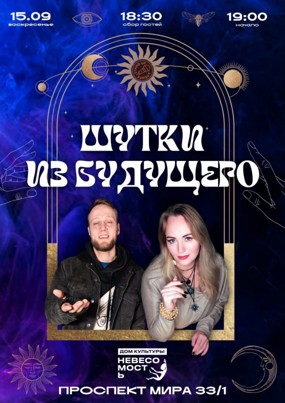 Горожане могут посетить мистическое юмористическое шоу, в котором комик Александр Хомяков и профессиональный таролог Юлия Шадрина отвечают на вопросы зрителей с помощью карт таро. Хомяков ‒ не разбирается в картах, поэтому будет смотреть и угадывать по ним ответ. Юлия Шадрина ‒ еще как разбирается в таро, поэтому на вопрос гостя будет дана правильная консультация.