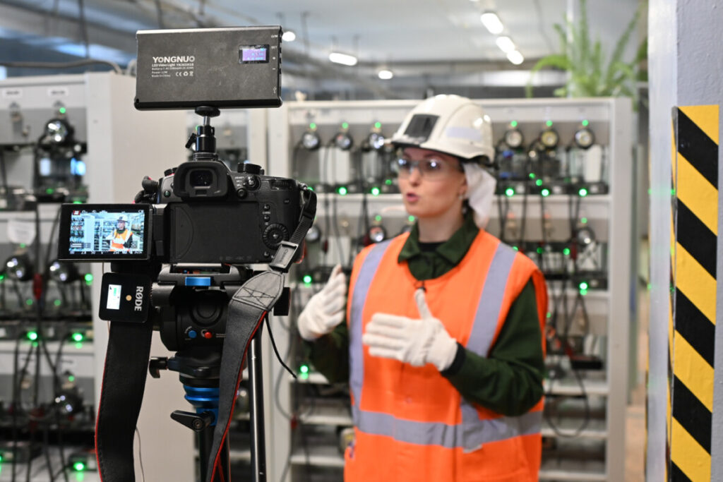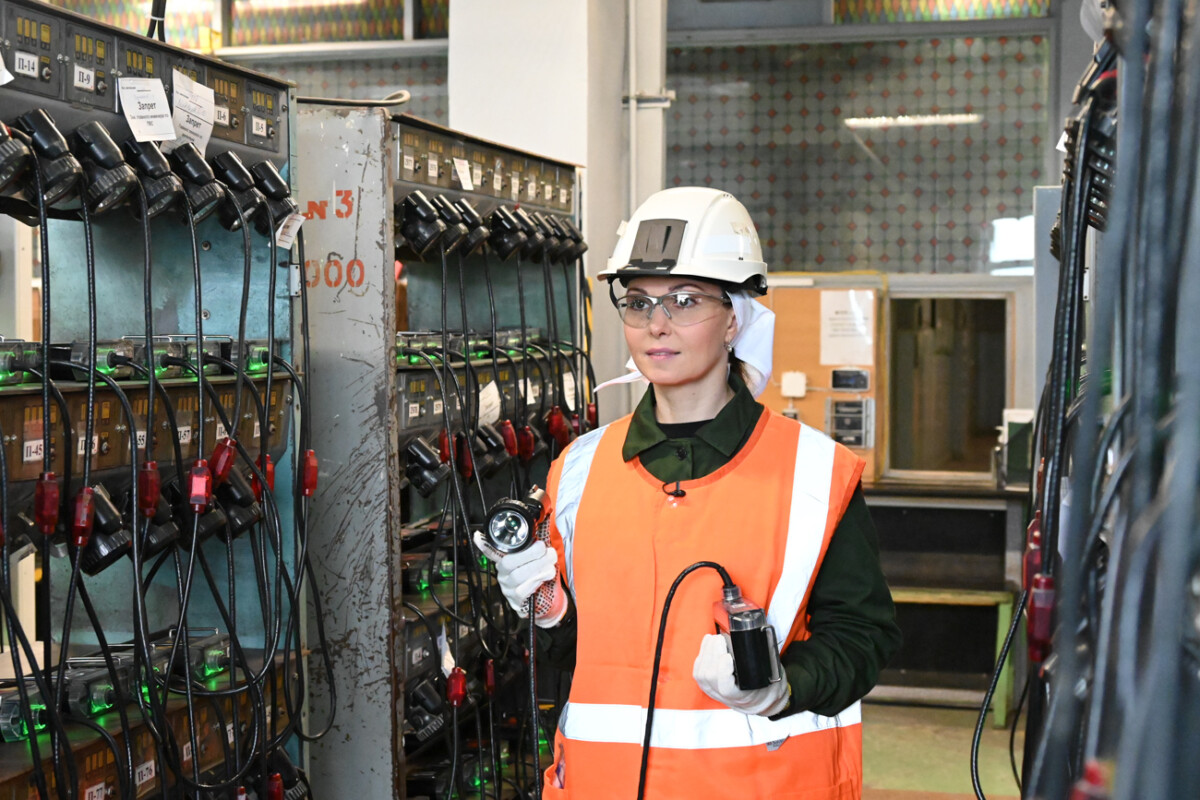 На руднике актрису переодели и провели для нее вводный инструктаж по технике безопасности, после чего Александра прошла в сердце рудника «Октябрьский» – операционный центр, куда стекается вся информация о том, сколько персонала и единиц техники находится на своих рабочих местах и все ли из них выполняют поставленные им производственные задачи. Это возможно благодаря современной системе точного позиционирования: в индивидуальном светильнике на каске каждого шахтера, а также в устройстве управления подземным транспортом встроены датчики, которые подают сигнал на считыватели, расположенные в подземной части рудника, вся информация со считывателей отображается на экране у специалиста операционного центра. Именно такие светильники и предстояло выдавать Александре.