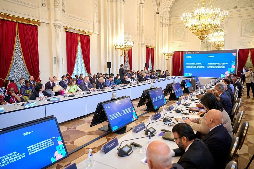 Министр культуры Российской Федерации Ольга Любимова, главы официальных иностранных делегаций и высшие должностные лица международных организаций обсудили перспективы международного культурного сотрудничества в современном мире в рамках X Санкт-Петербургского форума объединенных культур. Во встрече приняли участие представители Абхазии, Азербайджана, Армении, Афганистана, Бахрейна, Белоруссии, Бурунди, Венесуэлы, Вьетнама, Джибути, Египта, Зимбабве, Индии, Казахстана, Китая, Кубы, Кувейта, Лаоса, Ливана, Непала, Никарагуа, Объединенных Арабских Эмиратов, Омана, Палестины, Приднестровья, Сейшельских островов, Сербии, Судана, Таджикистана, Туркменистана, Турции, Узбекистана, Центральноафриканской Республики, Шри-Ланки, Южноафриканской Республики, Южной Осетии, автономного территориального образования Гагаузия, а также Содружества независимых государств, Организации черноморского экономического сотрудничества, Шанхайской организации сотрудничества, Делового совета БРИКС, Лиги Арабских Государств. Открывая встречу, Ольга Любимова подчеркнула, что за годы проведения форума в Санкт-Петербурге российские деятели культуры обрели настоящих друзей по всему миру. В своем вступительном слове глава Минкультуры России обратила внимание на то, что каждое государство в нынешней геополитической обстановке уделяет большое внимание сфере культуры, сохранению исторического наследия своего народа. «Российская Федерация последовательно проводит политику, направленную на поддержание и продвижение традиционных духовно-нравственных ценностей. При этом Россия — уникальный пример многонационального и мультикультурного государства, открытого для взаимодействия с зарубежными странами. И это взаимодействие исторически не на словах, а на деле строится на условиях уважения, равенства и братства народов», — сказала она. Говоря о перспективах международного культурного сотрудничества, Ольга Любимова отметила важность сохранения и продвижения обменных фестивалей культуры с зарубежными странами. В 2023-2024 годах Дни российской культуры и кино прошли в 32 странах мира, а Россия радушно приняла на своей территории фестивали из 15 государств. Обязательным направлением для культурного диалога, по словам Министра, является участие в больших международных культурных фестивалях. Знакомство творческих коллективов и деятелей культуры — это основополагающее условие для построения дружбы и взаимопонимания. Ольга Любимова остановилась на теме воспитания и образования в сфере культуры, от которых зависит «в прямом смысле наше будущее». В российских творческих вузах получают образование студенты из разных регионов России и из-за рубежа — представители 103 стран мира. «Сегодня мы работаем над созданием мира, свободного от предрассудков, искажения истории, «отмены культуры» и прочих негативных тенденций, а также социальных пороков массовой потребительской культуры», — сказала Министр. Глава Минкультуры России также рассказала иностранным коллегам об инициативах, запланированных в 2025 году: открытом международном песенном конкурсе «Интервидение» — первом в мире «музыкального ЭКСПО» — и Евразийской киноакадемии и кинопремии. Это масштабный творческий и идеологический проект, который направлен на объединение посредством киноискусст