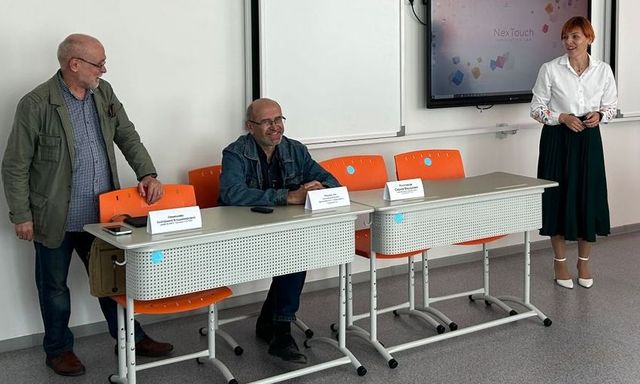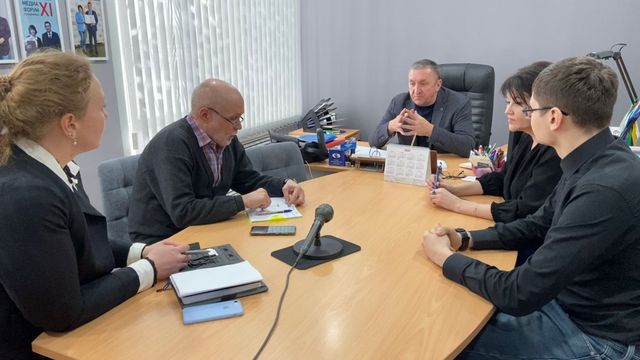 Тогдашний глава ТГО Александр Толкачёв (на снимке в центре) на встрече в редакции медиахолдинга поддержал идею медиаюридического класса. Февраль 2023