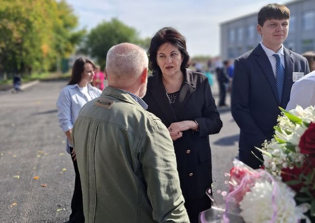 Елена Инькова перед началом торжественной линейки в Троицкой школе № 50: волнение детей, родителей и педагогов передаётся гостям
