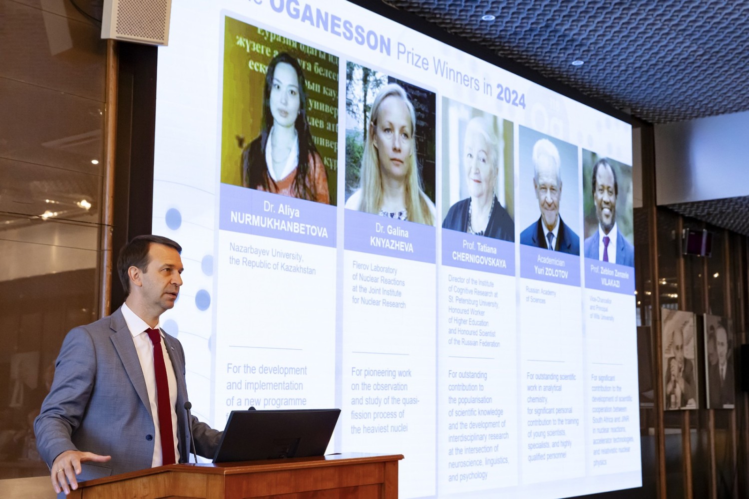 • вице-канцлер и ректор Университета Витватерсранда (ЮАР) Зеблон Вилакази — за значительный вклад в развитие научного сотрудничества между Южной Африкой и ОИЯИ в области ядерных реакций, ускорительных технологий и релятивистской ядерной физики;