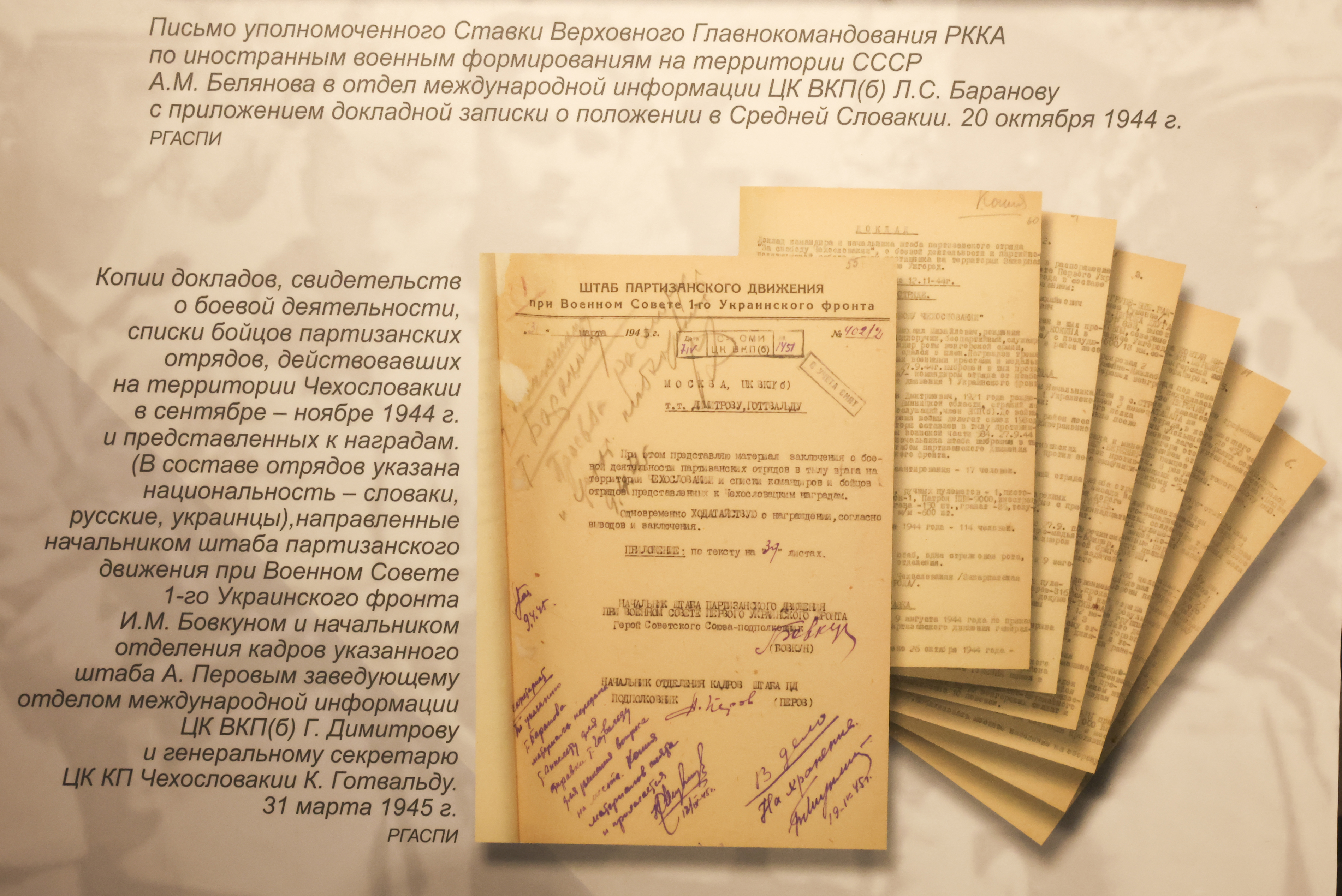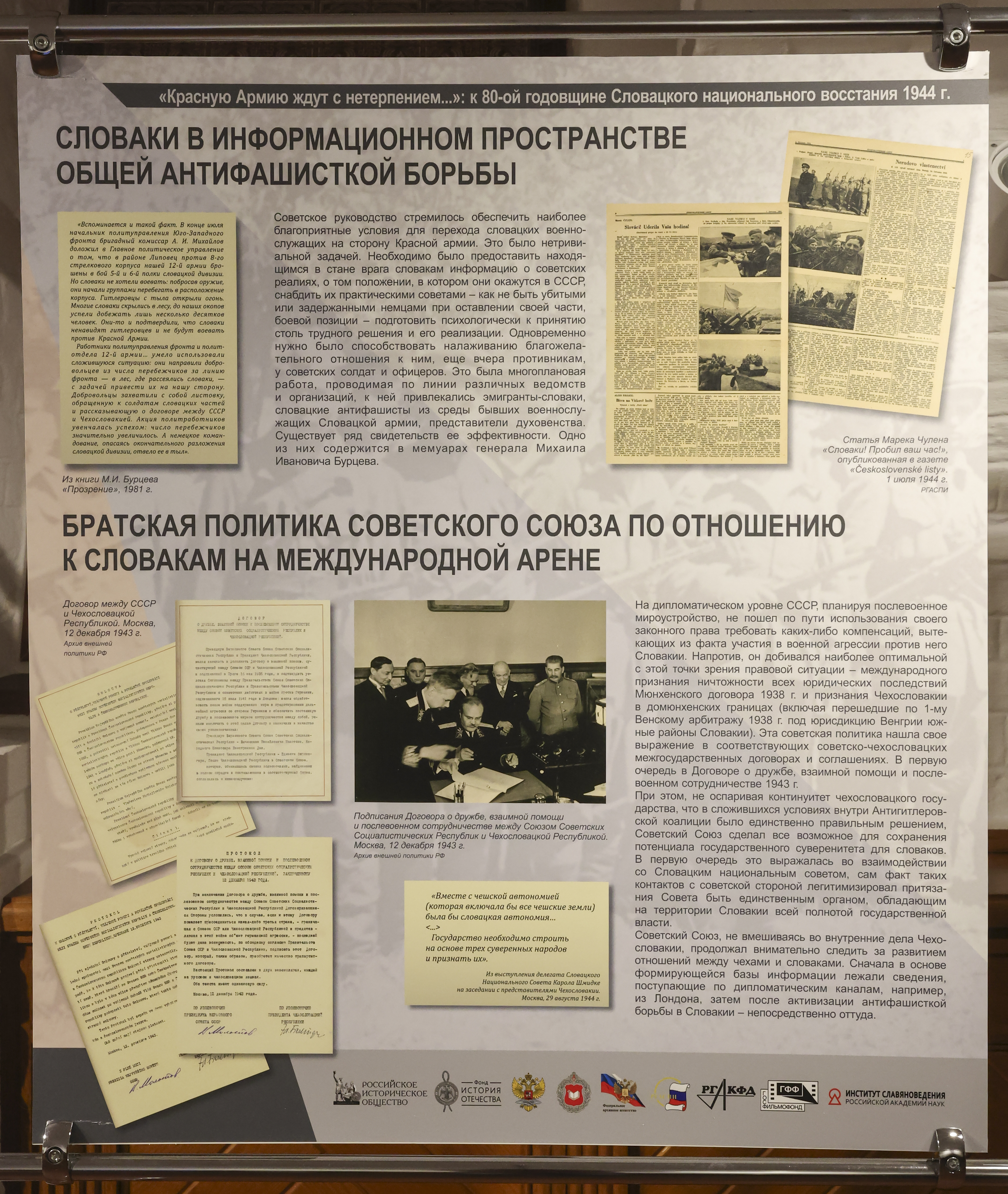 Круглый стол предваряло открытие выставки «Красную армию ждут с нетерпением…», посвящённой 80-й годовщине Словацкого национального восстания 1944 года. Открывая экспозицию, Сергей Нарышкин подчеркнул: