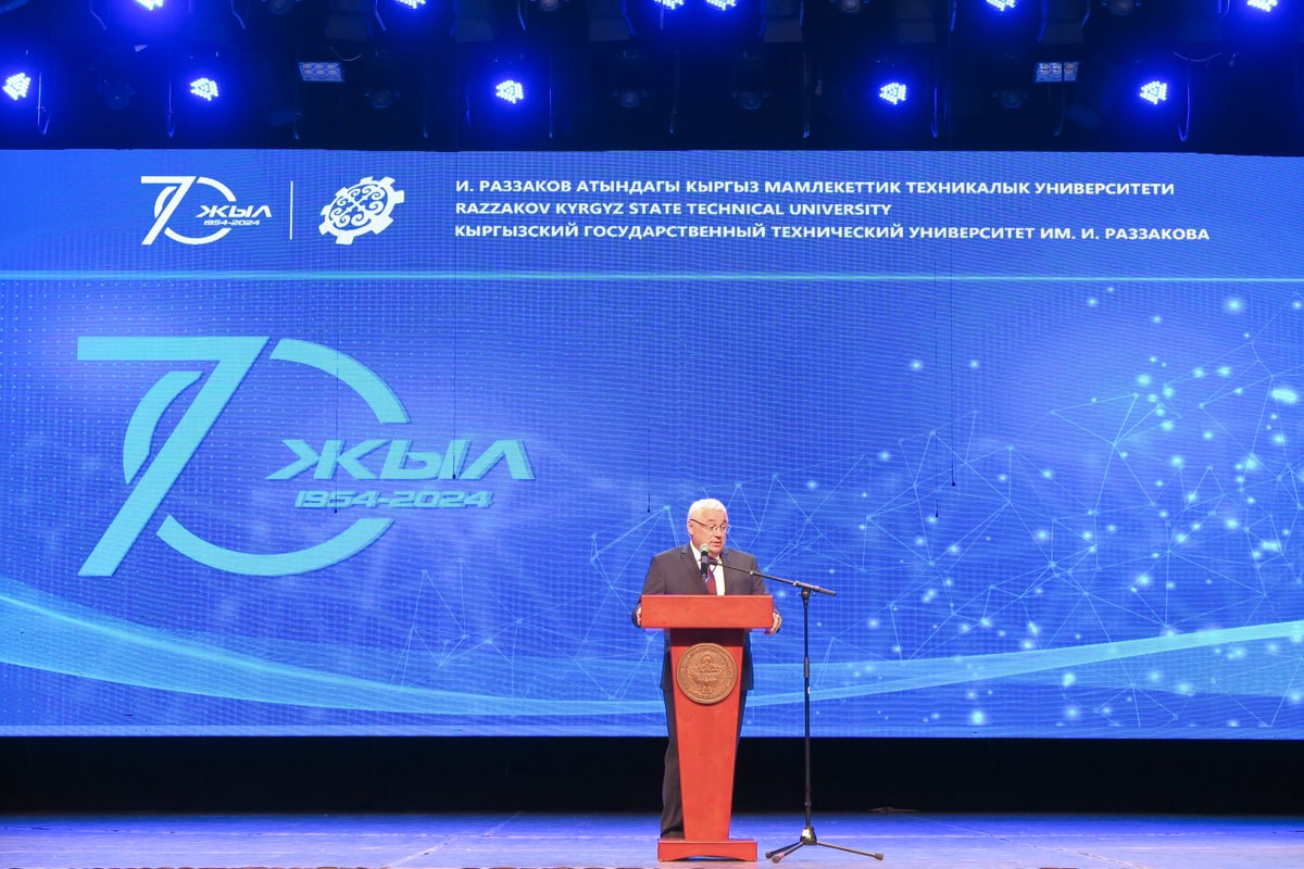 18 сентября 2024 года в столице Кыргызстана Бишкеке Кыргызский государственный технический университет имени И. Раззакова торжественно отметил свое 70-летие. Ректор НИУ «МЭИ» Николай Рогалев лично поздравил партнерский вуз с юбилеем на проходившем в Национальной филармонии торжественном собрании.