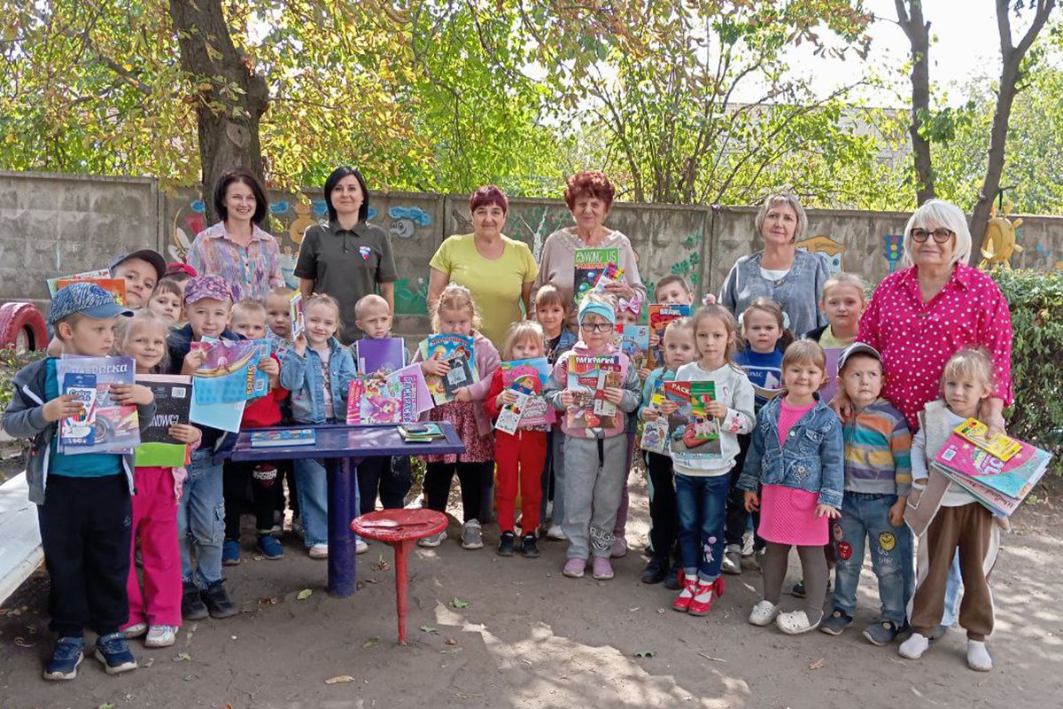 Сейчас детский сад посещают более 50 ребят. Для них исполнительный секретарь Краснолучского местного отделения «Единой России» Александра Козачковская передала наборы для творчества.