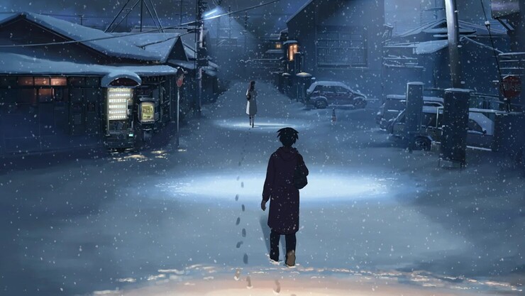 После окончания школы Такаки Тоно и Акари Шинохару уезжают далеко друг от друга, несмотря на связывающие их чувства. В один прекрасный день посреди снежной бури Такаки наконец-то приезжает увидеться с Акари. Аниме состоит из трёх частей: «Окашо» описывает встречу Такаки и Акари, «Космонавт» показывает Такаки глазами другого человека (действие разворачивается после этой встречи), а «5 сантиметров в секунду» рассказывает о непростом пути, который проделывают их души.