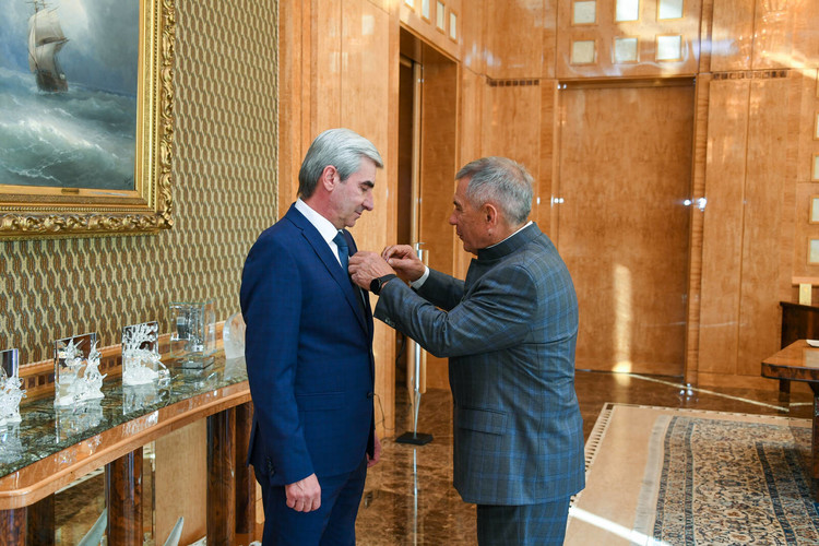 Глава Татарстана Рустам Миннихановпровел встречу с руководителем федеральной службы по экологическому, технологическому и атомному надзору (Ростехнадзор) Александром Трембицким. В ходе встречи татарстанский лидер наградил его медалью «100 лет образовании ТАССР» за плодотворное сотрудничество и большой вклад в развитие социально-экономического потенциала РТ.