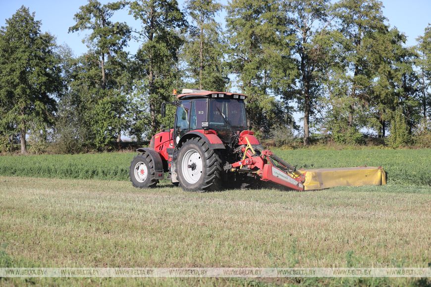 Вместе с заготовкой кукурузы на силос в хозяйстве идет четвертый укос люцерны, которая обеспечит животноводство белковыми кормами. Трактор Валерия Пашкевича кажется, что скользит по зеленому полю, оставляя после себя ровные валки. "Я родился в деревне, этот труд мне близок и понятен. Младший брат вернулся после армии, мы с ним поговорили, и он тоже пошел в хозяйство механизатором, - рассказал мужчина. - Всю работу делаем: косим, гребем, пашем, кропим".