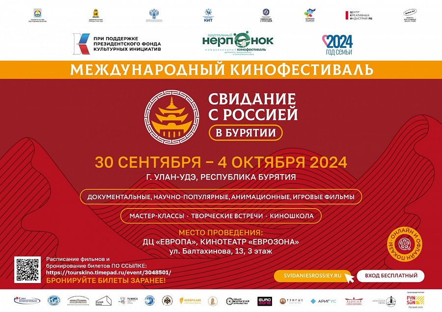 Подробное расписание кинопоказов и мастер-классов на сайте кинотеатра «Еврозона» https://eurozone-centr.ru/cinema/ и на сайте кинофестиваля «Свидание с Россией» https://svidaniesrossiey.ru/buryatia/