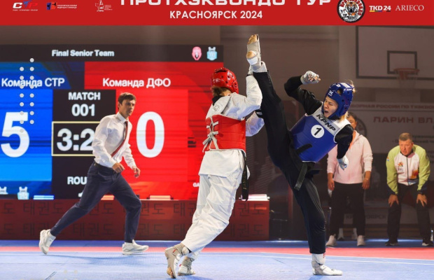 Один из финалов «ПроТхэквондо тура» состоялся и в Красноярске. Спортивной удачи участникам турнира пожелал первый заместитель министра спорта Красноярского края Марк Пнёв.