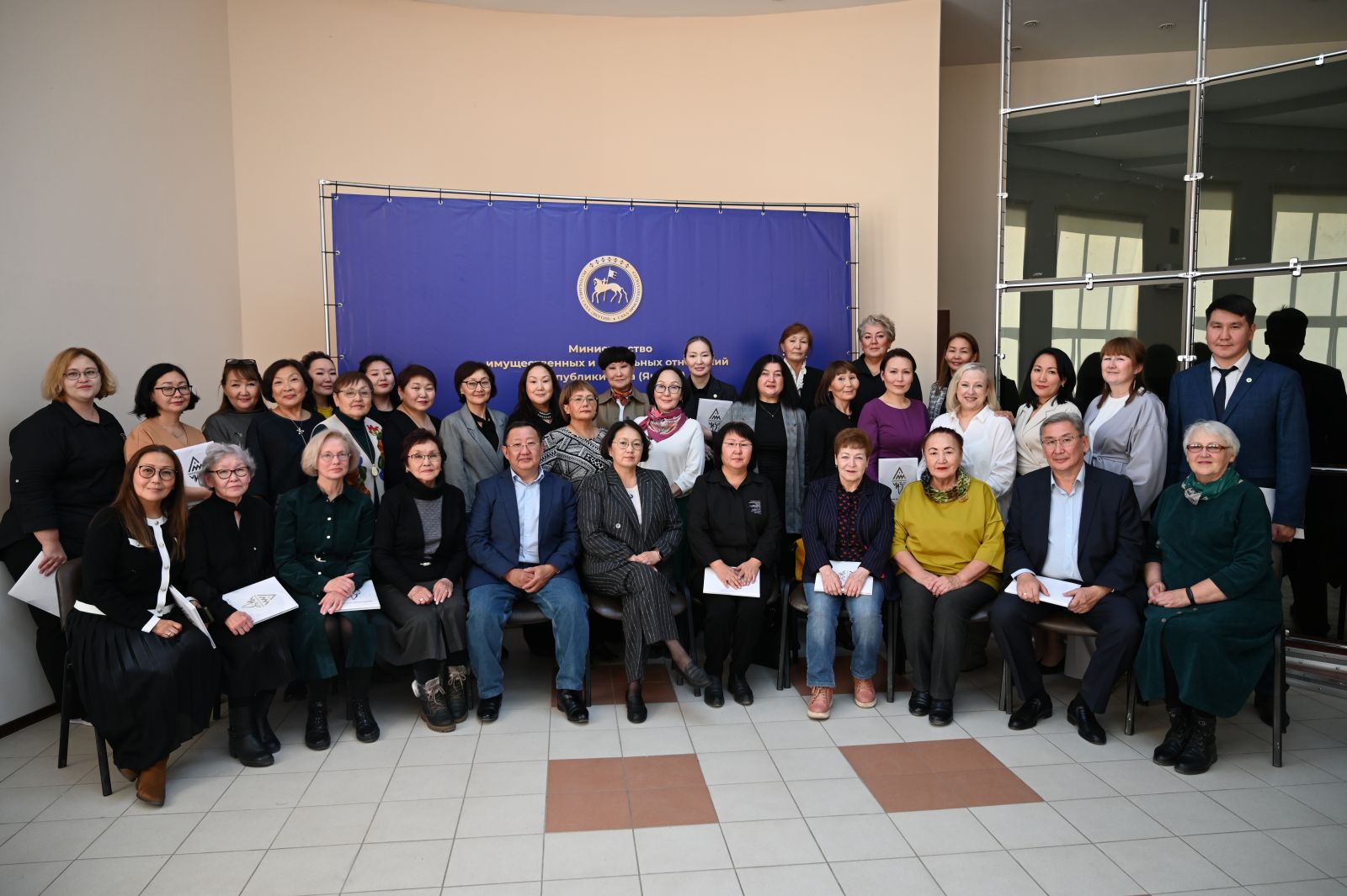 С огромной радостью встречали разных времен руководителей органа по управлению госимуществом разных лет: Евгению Григорьеву, министра с 2011 по 2020 годы, Нюргустану Пахомову, заместителя, первого заместителя министра, с 2016 по 2024 годы, Михаила Никифорова, заместителя министра с 2010 по 2020 годы.