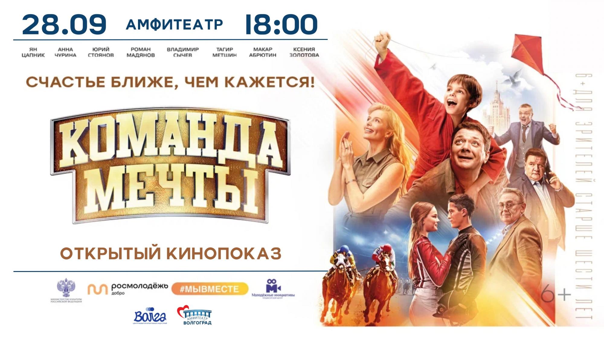 Завтра, 28 сентября, в волгоградском амфитеатре пройдёт показ семейного фильма «Команда Мечты» режиссёров Максима Зыкова и Филиппа Абрютина.