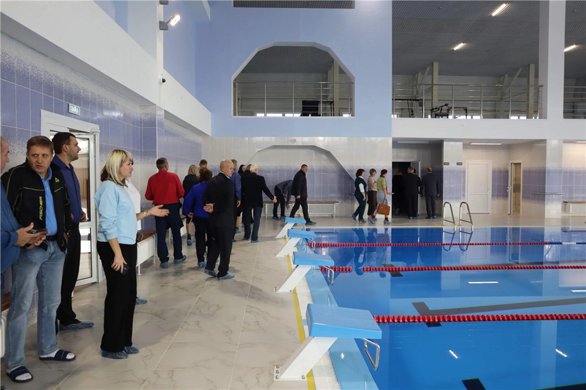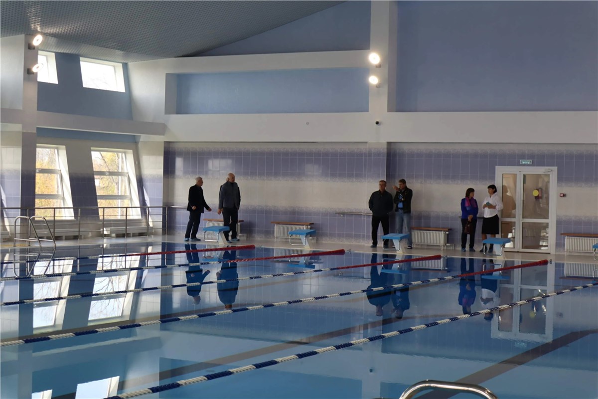 В двухэтажном здании разместились две чаши бассейна – большая 25-метровая на шесть дорожек и малая – для обучения плаванию. На втором этаже специалисты обустроили тренажерный зал. Для людей с ограниченными возможностями здоровья в спорткомплексе оборудовали пандусы и подъемники для перемещения в бассейн.
