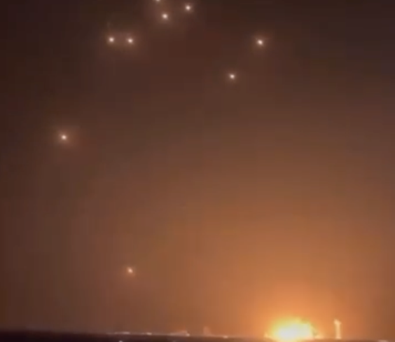 В социальных сетях люди публикуют кадры с момента обстрела. Сотни баллистических ракет горят в небе и падают с громкими хлопками на землю.