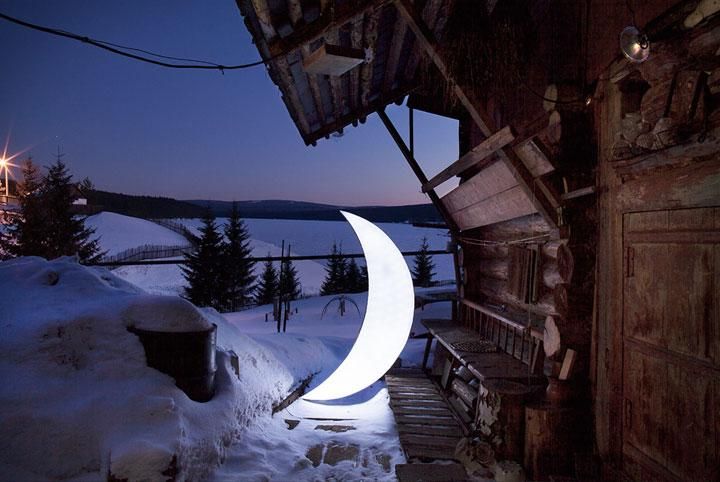 Среди известных работ на экспозиции — «Частная луна» Леонида Тишкова. Произведение представляет собой фотоисторию о мужчине, который полюбил Луну, упавшую на чердак его дома, и решил провести с ней всю жизнь.