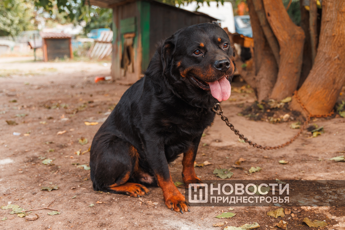 А этого ротвейлера примерно месяц назад в приют определили работники бендерского почтового отделения. Пёс приходил туда ежедневно и лежал у входа. Добряк вёл себя спокойно, но вызывал беспокойство у горожан. Видно, что пёс домашний: он довольно упитанный, и на нём был ошейник. Скорее всего, он жил в частном доме, сидел на цепи и охранял дом, говорят работники приюта. По какой-то причине пёс оказался на улице, и его тоже никто не ищет.