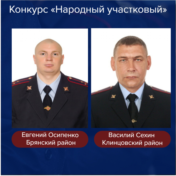 Участковый, набравший большинство голосов населения, будет представлять Брянскую область на Всероссийском конкурсе «Народный участковый».
