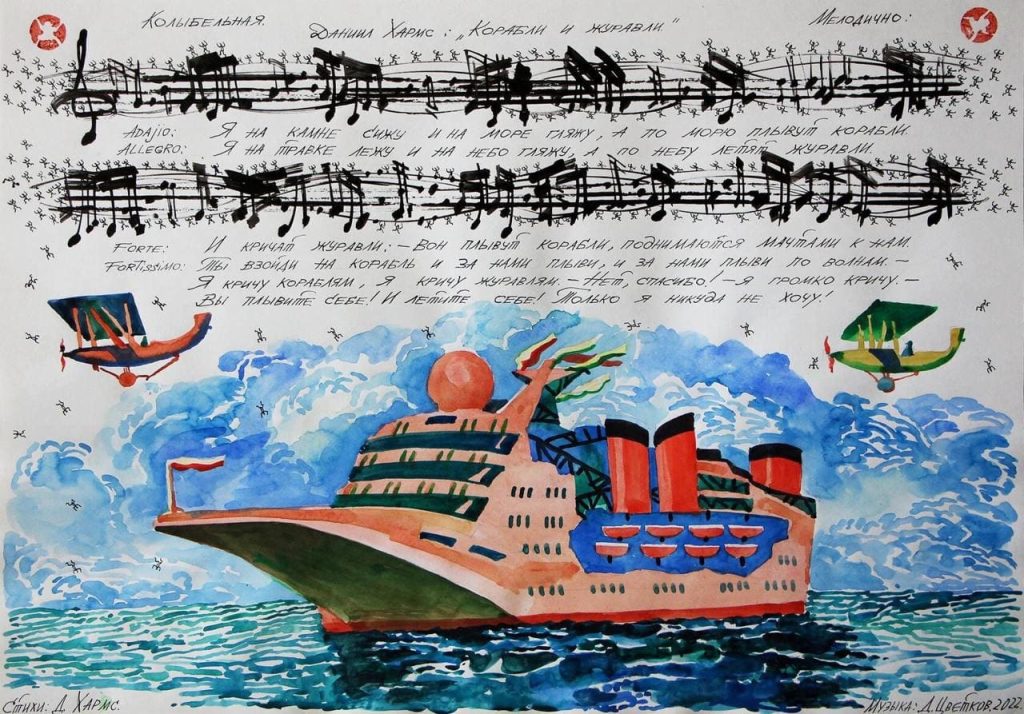 В руках художника акварель появилась случайно, до этого свои работы он писал маслом. Позже шуточная задумка вылилась в целую серию портретов кораблей, которые он дополнил нотными записями и отрывками из стихотворений великих поэтов: Даниила Хармса, Иосифа Бродского, Шарля Бодлера и Гомера.