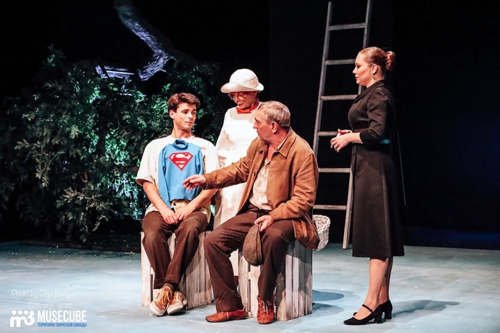 Работа Арины Гулимовой «Мой дедушка был вишней» стала спектаклем для семейного визита в театр. Добрая, временами сентиментальная, не обходящая сложных тем, выполненная в игровом ключе, но с сохранением психологических нюансов и подробностей. И занят в ней весь актерский цвет театра. Выдающаяся работа Михаила Окунева, сыгравшего деревенского деда Оттавиано, кажется, открыла новые грани его таланта. Под стать ему деревенская бабушка Теодолинда в исполнении Ирины Герасимовой, хранительницы семейного очага. А как выразительны городские дедушка и бабушка (Николай Михалевский и Татьяна Филоненко), контрастирующие с прочей родней.