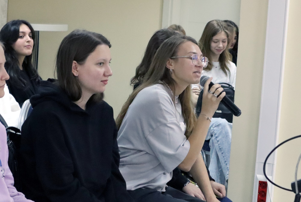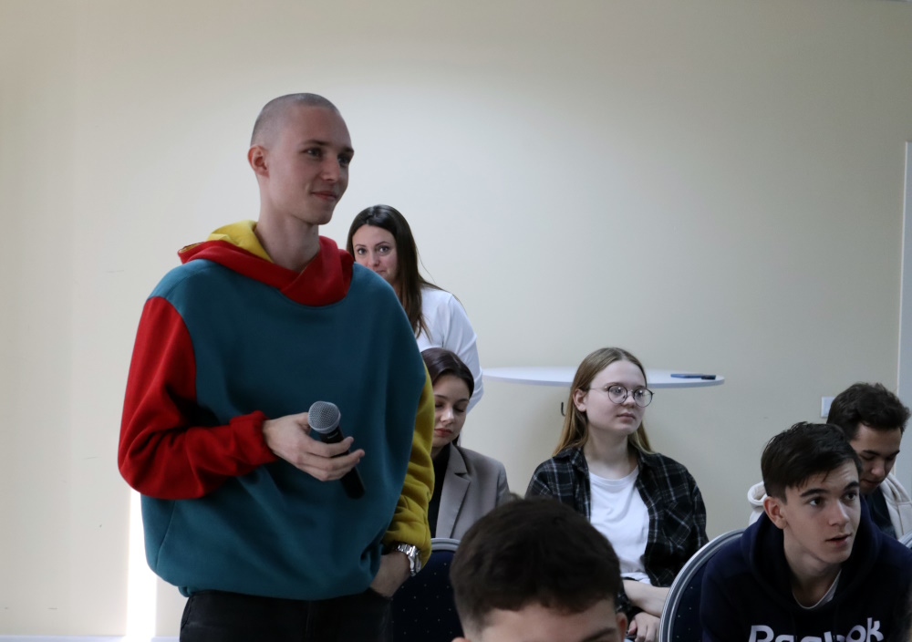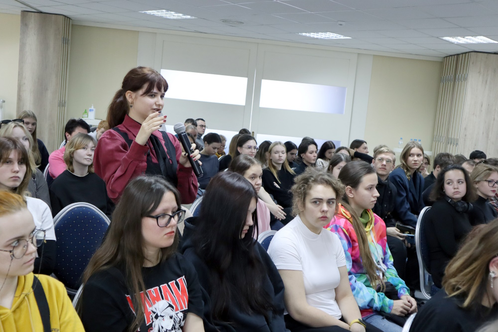 По секрету: встреча продлилась гораздо дольше, чем обычно. В зале был аншлаг, в первый раз не хватило стульев! А когда съемка закончилась, студенты долго не отпускали героя нашей программы, задавая вопросы, выясняя как попасть к нему на практику, а, может, и в штат. Кстати, сейчас на предприятии есть вакансии.