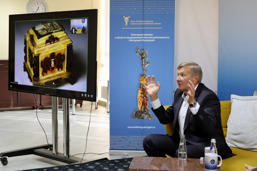 Мы представили свою коллекцию в ТПП России, участвуя в конкурсе «Лучшее предприятие года». Из 1200 с лишним предприятий, подавших заявки, номинировано было только тридцать. Из тридцати только 11 получили «Золотого Меркурия». И один из них у «Сувениров Балтики». Это пока единственный Меркурий у янтарных компаний Калининградской области.
