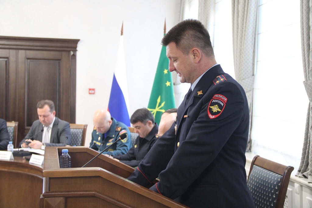 МВД по Республике Адыгея на заседании представляли врио министра полковник полиции Махмуд Тлюстангелов и начальник управления Госавтоинспекции подполковник полиции Андрей Огурцов.