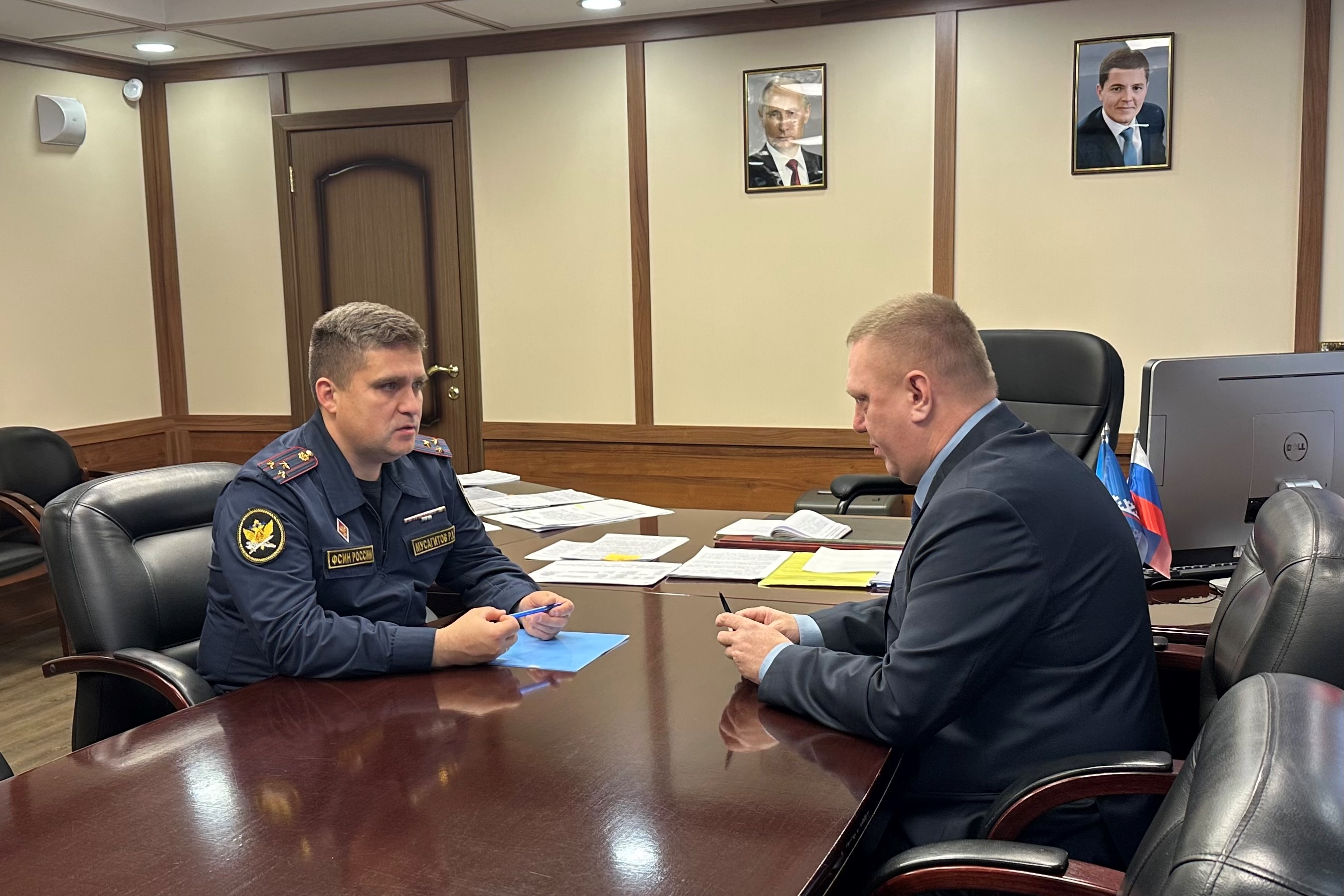 Начальник ФКУ УИИ УФСИН России по Ямало-Ненецкому автономному округу Руслан Мусагитов с рабочим визитом посетил г. Надым. В рамках выезда была проведена встреча с первым заместителем главы Администрации Надымского района Вадимом Таскаевым по вопросам реализации пробации на территории муниципального образования, также обсуждались вопросы материального обеспечения деятельности филиала., в том числе обеспечения жилыми помещениями сотрудников, прибывающих переводом на службу из других регионов.