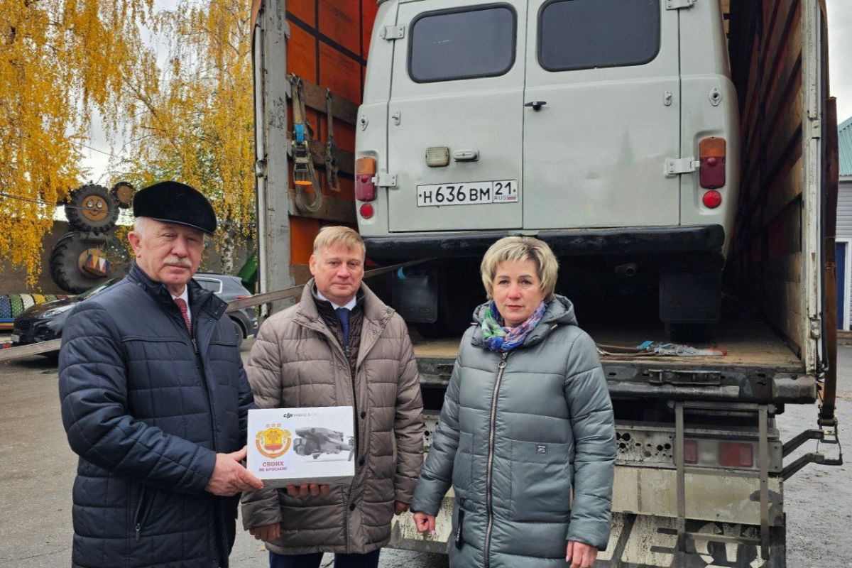 При поддержке предприятий Чувашской Республики «Единая Россия» передала для бойцов два автомобиля повышенной проходимости – «Ниву» и «буханку», а также квадрокоптер.