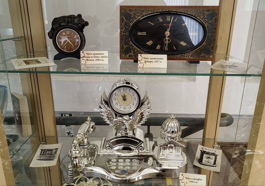 В экспозиции представлены модели настольно-каминных часов, выпущенные во второй половине ХХ века: "Данила мастер и Хозяйка медной горы", выполненные из сплава алюминия с кремнием. Здесь же - большое количество настенных, наручных и каминных часов от советских производителей, таких как "Маяк", "Витязь", "Янтарь", "Весна", "Слава", "Агат", изделия Минского часового завода "Луч".