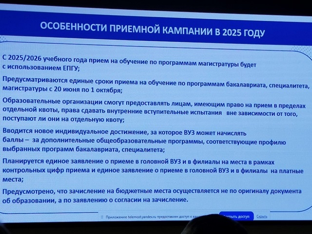По итогам заседания были даны высокая оценка результатам деятельности вузов Ростовской области в период приёмной кампании 2024 года и рекомендации по организации приёма в 2025 году.