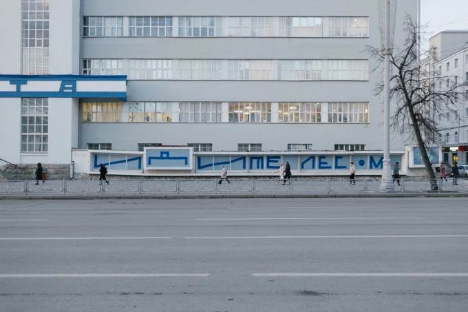 «Пойдите лесом!», – новый арт-объект в Екатеринбурге, созданный в рамках паблик-арт программы «ЧО». Автор мурала – нижегородский художник Синий Каранадш. В работе прослеживается авторский стиль уличного художника, а сама надпись имеет подтекст. Здесь же на стендах разместили «Карту лесов Екатеринбурга». Таким образом, арт-объект отправляет горожан на прогулку в лес, а куда именно пойти, можно узнать, изучив карту.