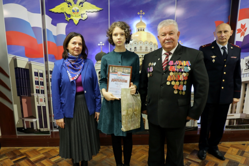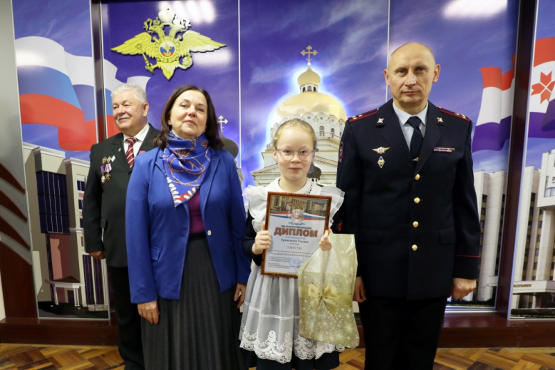 Подарками и дипломами были отмечены победители и призеры конкурса рисунков «Мои родители работают в полиции». Заместитель Министра Игорь Зубаров поблагодарил ребят за их творчество, а также пожелал крепкого здоровья, успехов в учебе и побед. В ответном слове ребята поздравили всех сотрудников с наступающим праздником, пожелали своим близким удачи по службе и пообещали продолжить семейную династию.