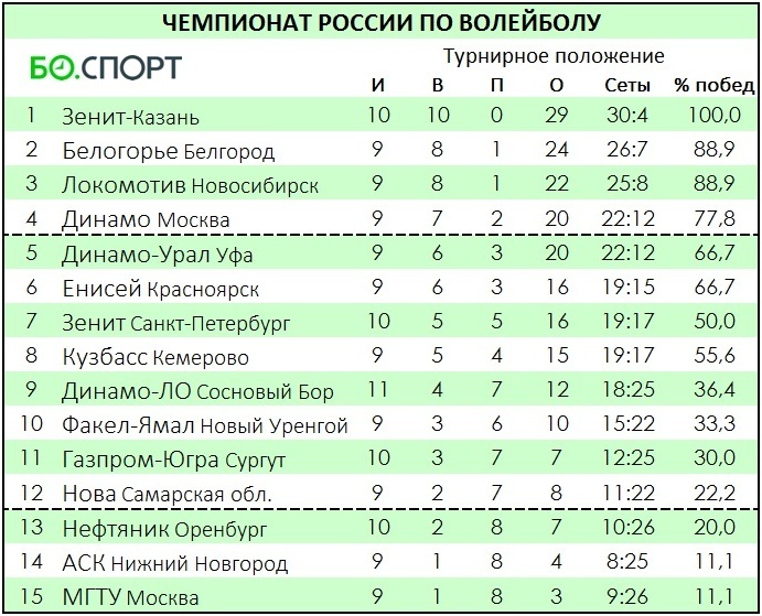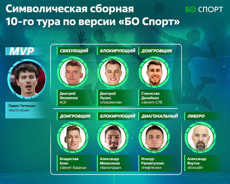 У «Зенита» 17 очков набил Владислав Бабкевич, удерживающий лидерство в гонке бомбардиров. А Станислав Динейкин без нагрузки в приёме реализовал 72% атак (13/18).