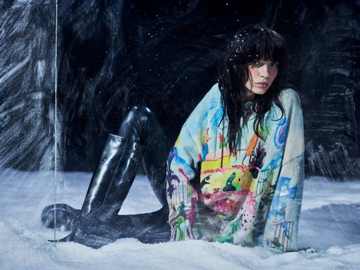 В коллекцию вошли вязаные свитеры, шарфы, шапки, варежки. На изделия дизайнеры перенесли картины Анны: в сюрреалистичных мирах художницы живут придуманные персонажи – собака с гипнотическими глазами, бабочка в сапогах и человек-облако. Дополняют коллекцию блокноты с обложками-картинами и надписью «Ты случайный зритель».
