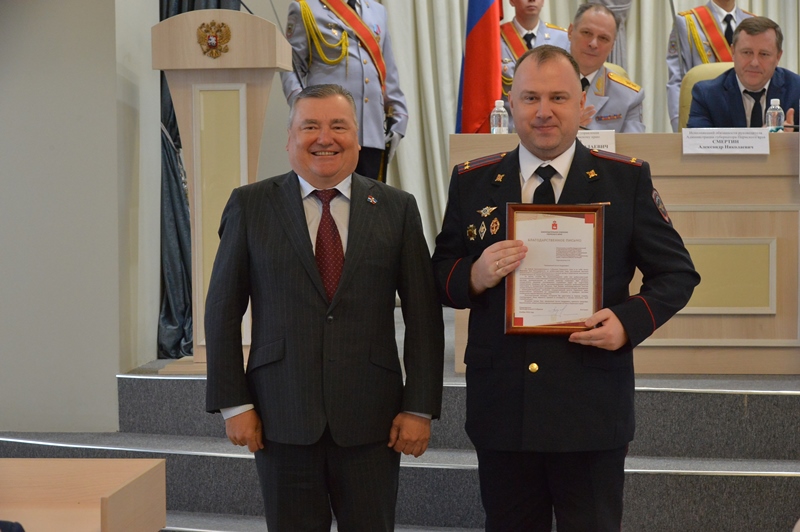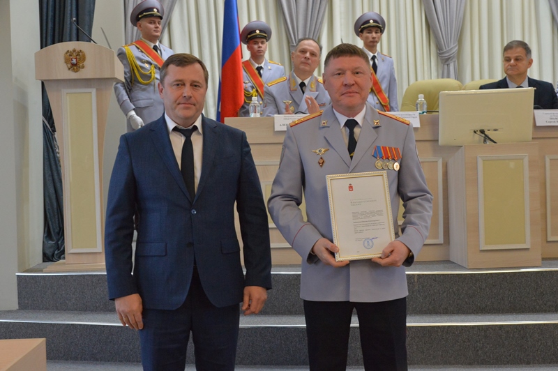 За достижение высоких результатов в обеспечении законности и правопорядка, профессионализм и образцовое выполнение служебного долга вручил благодарственные письма полномочного представителя Президента Российской Федерации в Приволжском федеральном округе начальнику отдела организации деятельности участковых уполномоченных полиции и подразделений по делам несовершеннолетних ГУ МВД России по Пермскому краю подполковнику полиции Максиму Осколкову, старшему следователю по особо важным делам следственной части ГСУ краевого МВД подполковнику юстиции Камиле Галеевой.