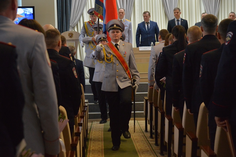 Значимое событие традиционно началось с вноса Государственного флага Российской Федерации и Знамени Главного управления Министерства внутренних дел Российской Федерации по Пермскому краю.