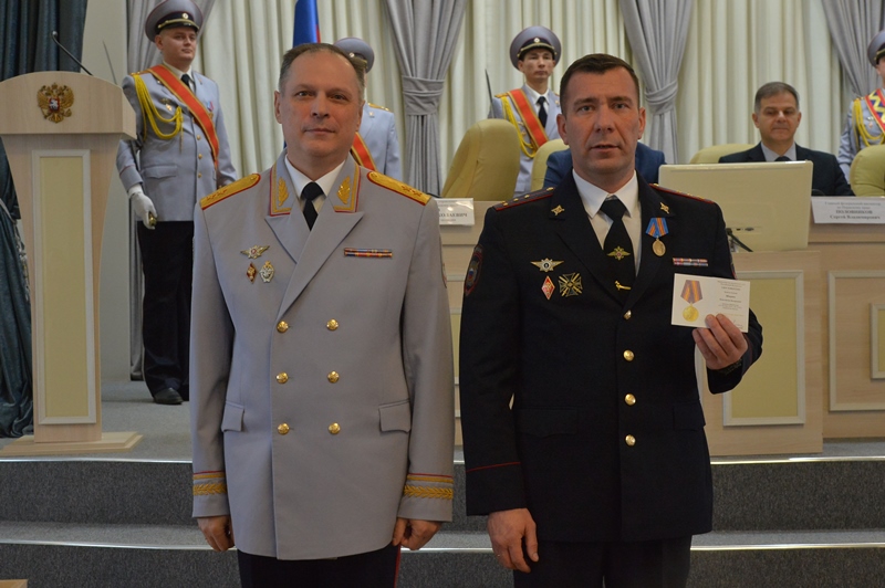За образцовое исполнение служебных обязанностей и достигнутые успехи в работе начальник ГУ МВД России по Пермскому краю Александр Щеглов вручил медаль МВД России «За доблесть в службе» начальнику отдела следственной части ГСУ ГУ МВД России по Пермскому краю полковнику юстиции Василию Пермякову.