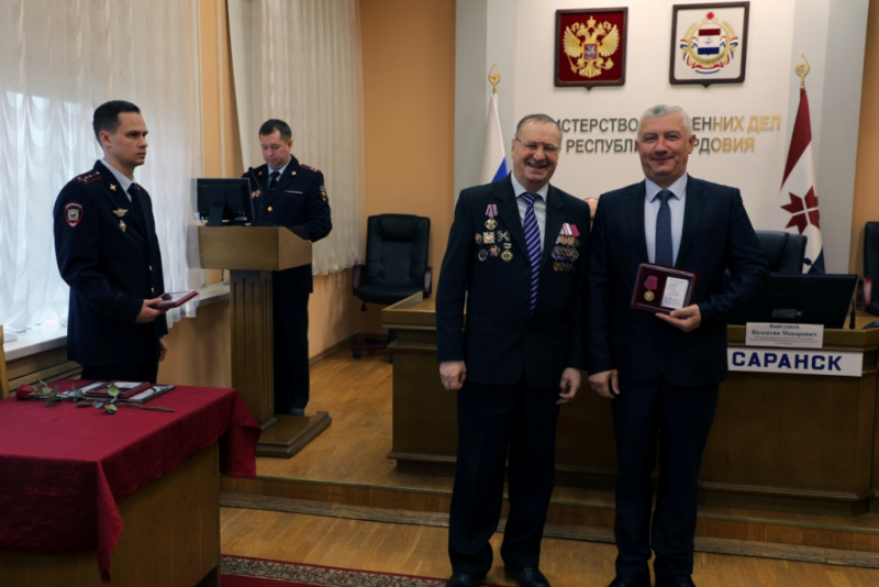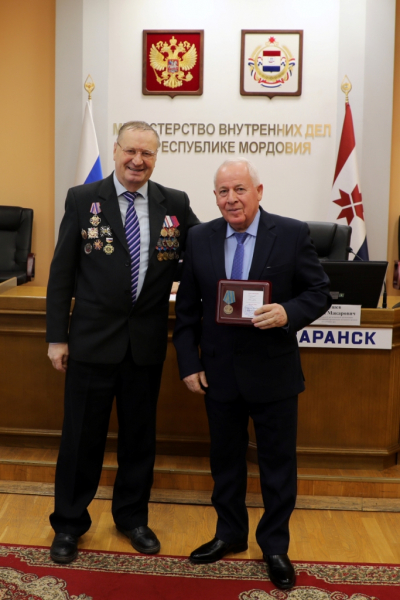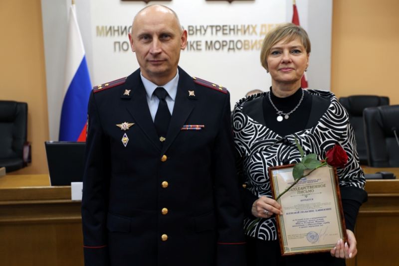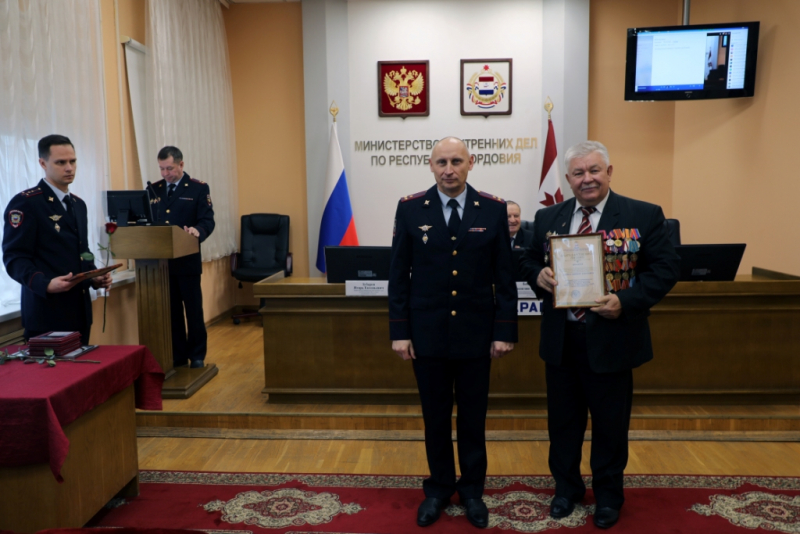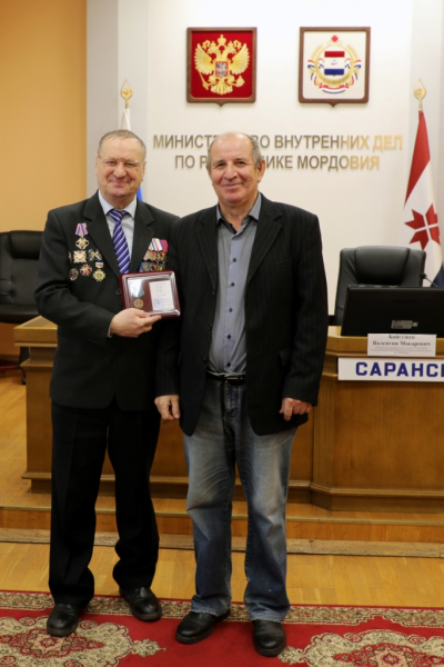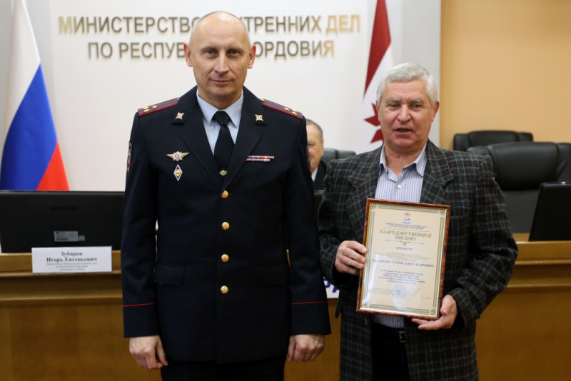 За активную работу по патриотическому воспитанию, многолетнюю добросовестную службу в органах внутренних дел он по поручению руководителя регионального ведомства вручил благодарственные письма Министра внутренних дел по Республике Мордовия председателю Правления Мордовской региональной организации Общероссийской общественной организации ветеранов органов внутренних дел подполковнику внутренней службы в отставке Виктору Ларину, председателю первичной ветеранской организации Штаба МВД по Республике Мордовия полковнику внутренней службы в отставке Денису Комракову, члену Правления Мордовской региональной организации Общероссийской общественной организации ветеранов органов внутренних дел подполковнику полиции в отставке Алексею Кузину и членам Мордовской региональной организации Общероссийской общественной организации ветеранов органов внутренних дел подполковнику милиции в отставке Сергею Гурьянову и подполковнику внутренней службы в отставке Гюльсине Котковой.