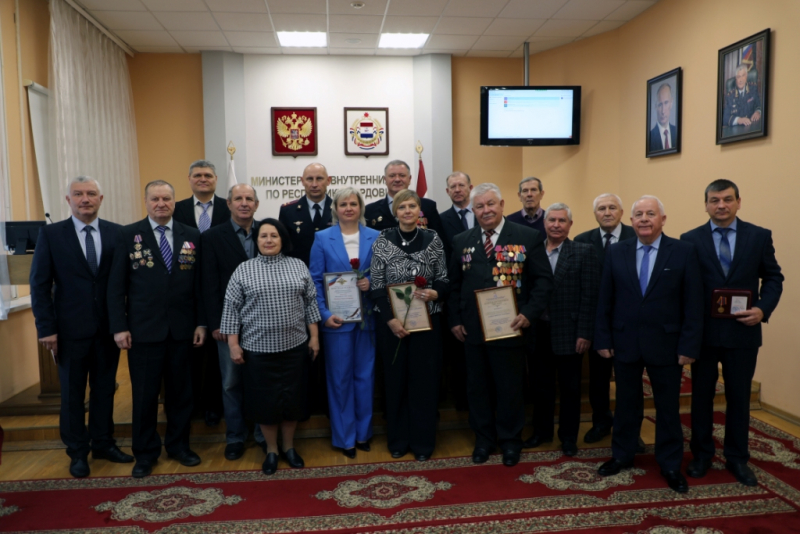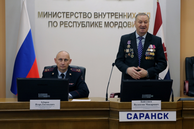 В МВД по Республике Мордовия в преддверии Дня сотрудника органов внутренних дел состоялась встреча руководства ведомства с ветеранами. Участие в мероприятии приняли заместитель Министра полковник полиции Игорь Зубаров, председатель Мордовской региональной организации Общероссийской общественной организации ветеранов органов внутренних дел Валентин Байгушев, актив Совета ветеранов и ветераны органов внутренних дел, а также в режиме видеоконференцсвязи председатели первичных ветеранских организаций территориальных органов МВД России на районном уровне.