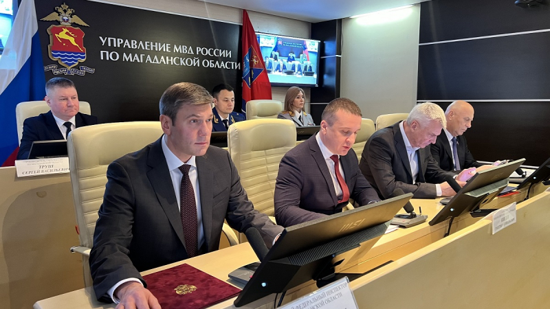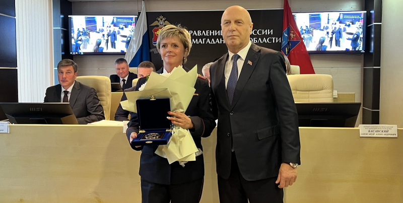 Сегодня в УМВД России по Магаданской области состоялось торжественное собрание, посвященное Дню сотрудника органов внутренних дел, который отмечался накануне 10 ноября. В мероприятии приняли участие губернатор Магаданской области Сергей Носов, главный федеральный инспектор по Магаданской области Николай Ежов, заместитель председателя областной Думы Александр Басанский, руководитель регионального УФСБ России Сергей Труш, прокурор области Дмитрий Разуваев и руководитель регионального СУ СК России Александра Просина.