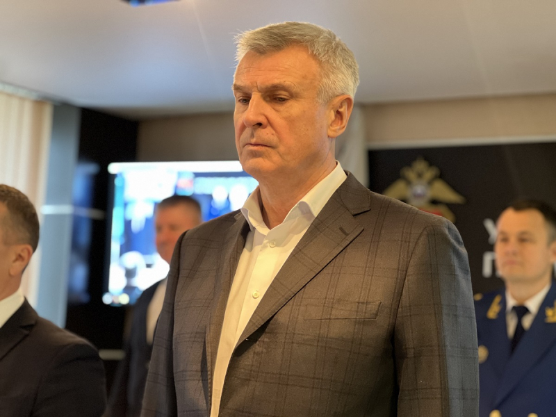 Открывая торжественное собрание, начальник УМВД генерал-майор полиции Дмитрий Князев зачитал текст поздравления Министра внутренних дел Российской Федерации Владимира Колокольцева.