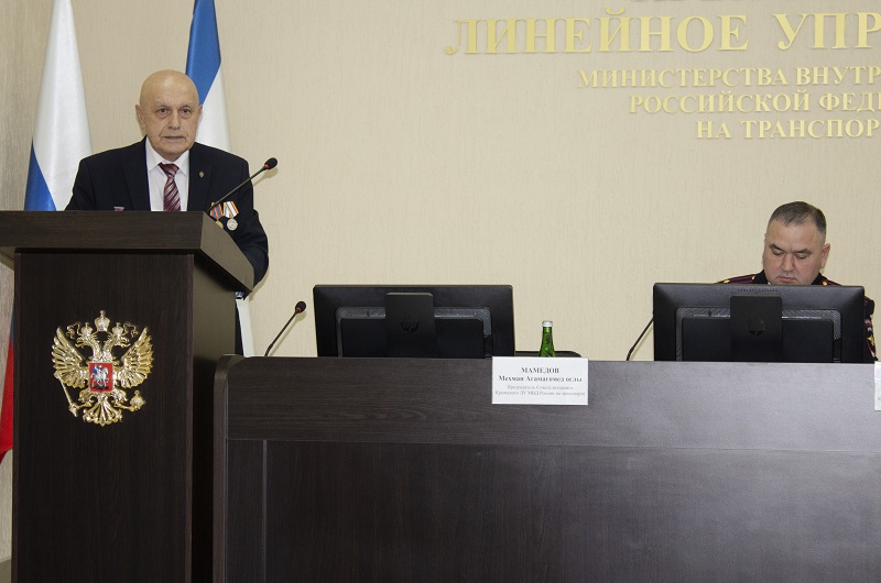 Со словами поздравлений выступили председатель Совета ветеранов Крымского линейного управления и председатель Общественного совета при Управлении, пожелали транспортным полицейским успехов в профессиональной деятельности, крепкого здоровья, уверенности в завтрашнем дне, мира и благополучия.