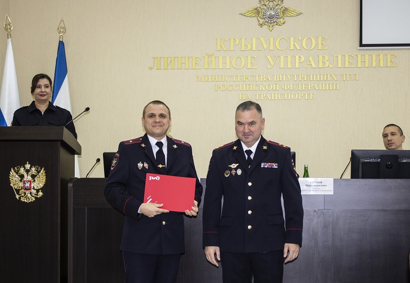 В Крымском линейном управлении МВД России на транспорте состоялось торжественное мероприятие, посвященное Дню сотрудника органов внутренних дел Российской Федерации.