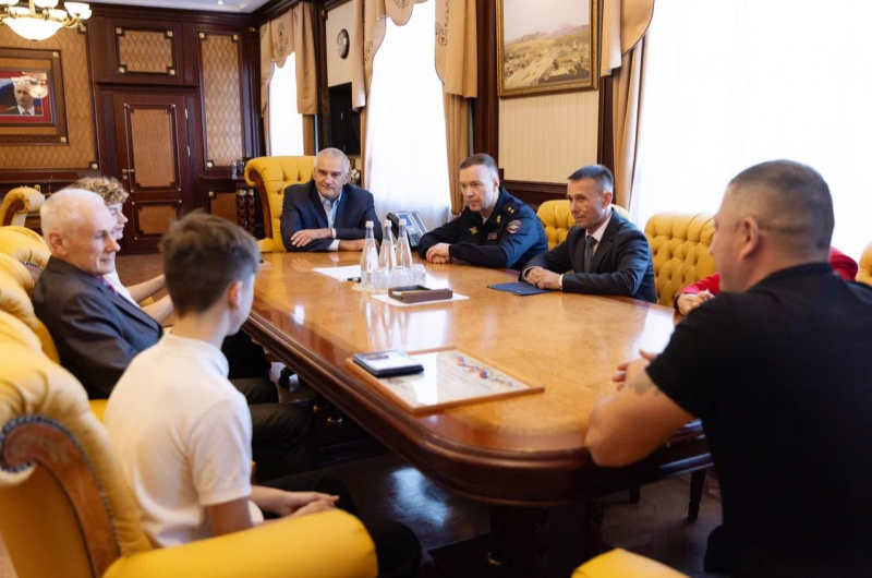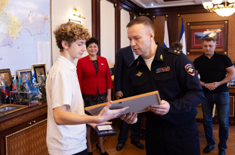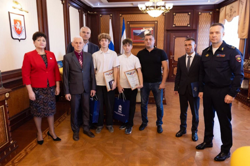 Сенатор от исполнительного органа государственной власти Республики Крым Юрий Нимченко вручил ребятам памятные медали Совета Федерации «За проявленное мужество».