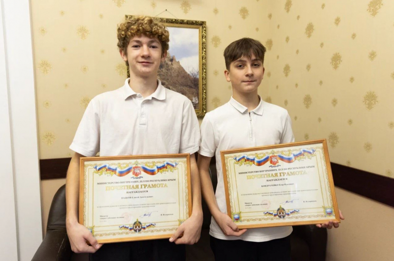 За проявленное мужество и помощь полиции в предотвращении сбыта наркотиков Елисею Пацкову и Егору Кондратенко руководитель ведомства вручил почетные грамоты.