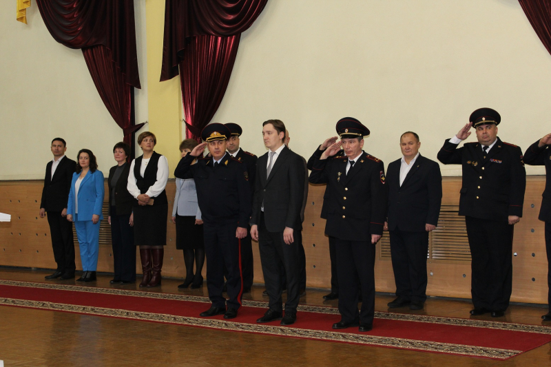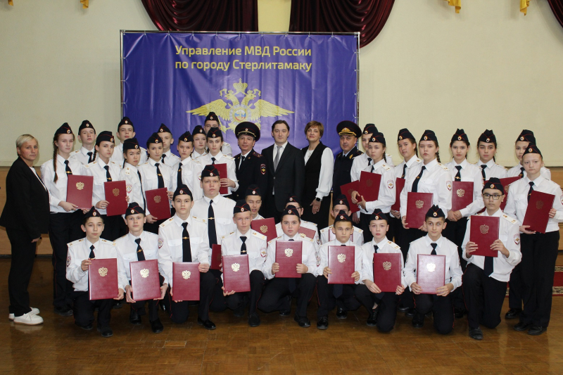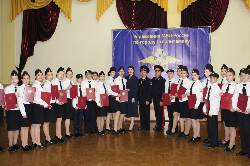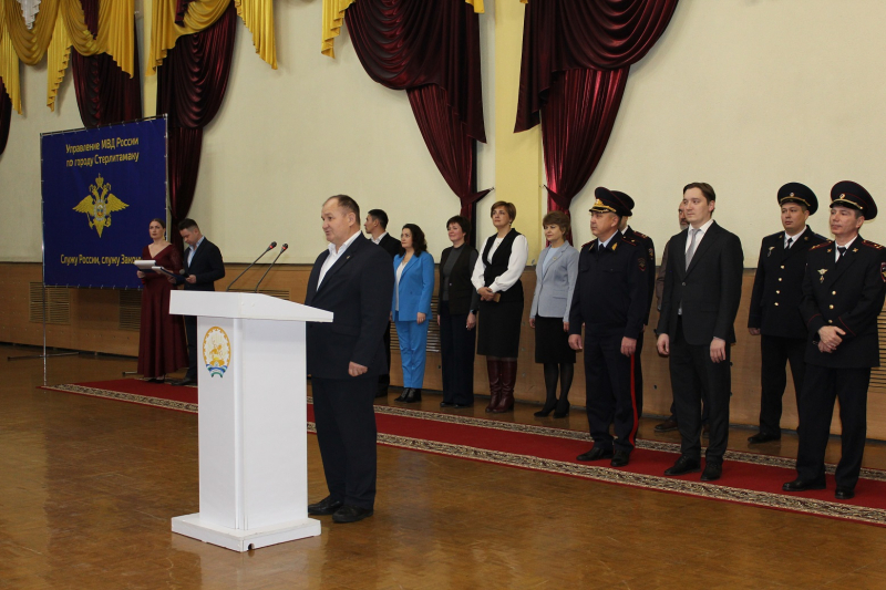 В Стерлитамакском городском дворце культуры прошло масштабное мероприятие, в котором приняли участие заместитель министра внутренних дел по Республике Башкортостан генерал-майор полиции Айдар Зубаиров, глава администрации города Эмиль Шаймарданов, начальник отдела образования Зигангир Ишбаев, начальник Управления МВД России по городу Виктор Баёв, председатель ветеранской организации майор милиции в отставке Наиль Шакбасаров, председатель Общественного совета Алексей Дмитриев и руководящий состав Управления МВД России по г. Стерлитамаку.