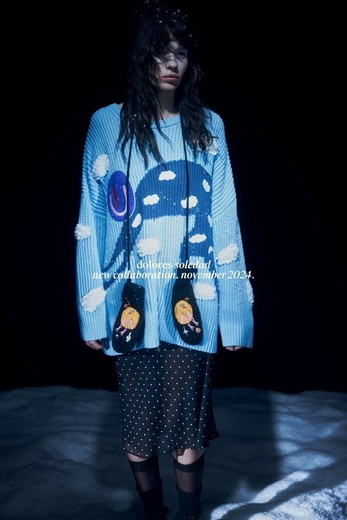 Как рассказали в Befree, дизайнеры бренда перенесли картины Анны на вязаные свитеры и аксессуары — шарфы, шапки, варежки: «Получилась одновременно забавная и жутковатая коллекция, в которой даже Рождество похоже на абсурдистскую сказку».