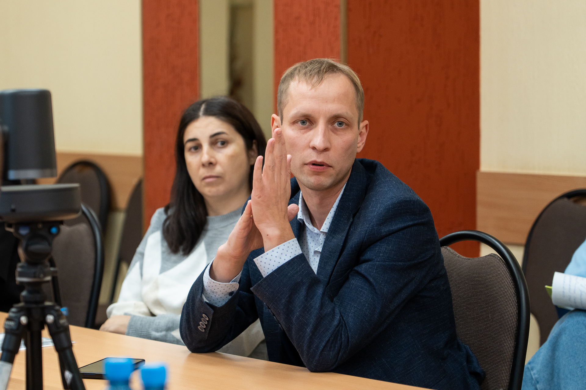 Участниками разговора явились все приглашенные на круглый стол проректоры. Важные пояснения о работе компьютерной техники, информационном обеспечении в ВятГУ предоставил проректор по информатизации и цифровому развитию Дмитрий Седов. Он сообщил о приобретении в рамках программы развития вуза, проекта «Цифровые кафедры» нового парка информационной техники, рассказал об обновлении нескольких компьютерных классов.