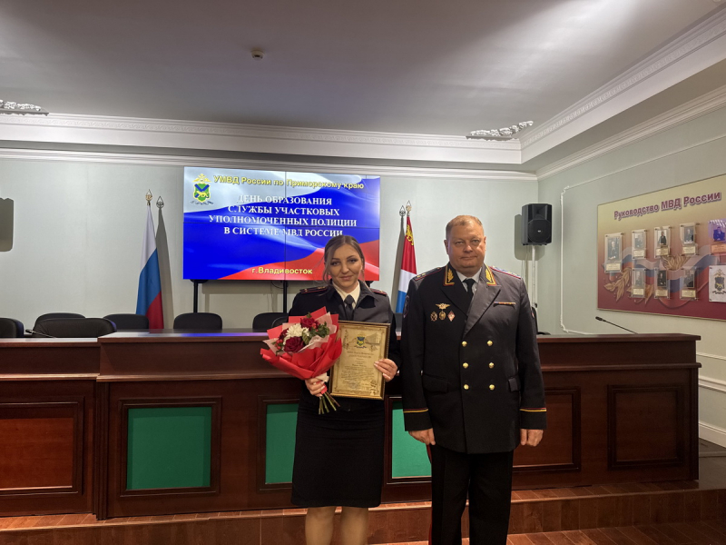 Участковым уполномоченным полиции со всего Приморского края, продемонстрировавшим высокие показатели оперативно-служебной деятельности, генерал-лейтенант полиции вручил благодарственные письма, почётные грамоты и нагрудные знаки МВД России.